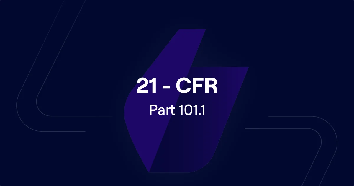21 CFR 101.1 outlines the requirements for the principal display panel (PDP) on packaged food products. It defines the PDP as the part of the label most likely to be shown to consumers in retail settings, specifying size, clarity, and the accommodation of mandatory information.