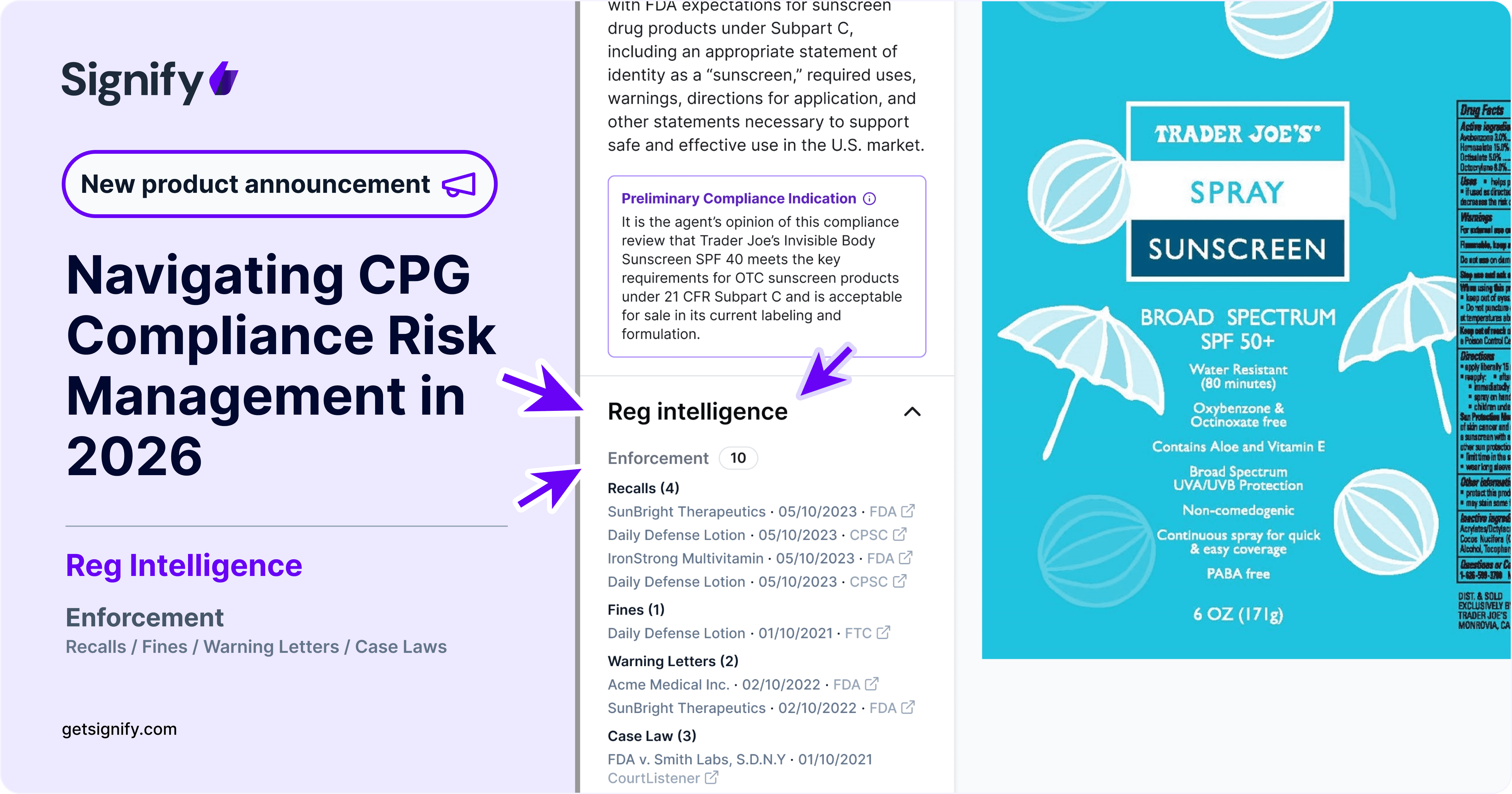 Signify's Regulatory Intelligence is built around a straightforward yet consequential idea: the compliance review and the enforcement record should exist in the same place, automatically mapped to each other.